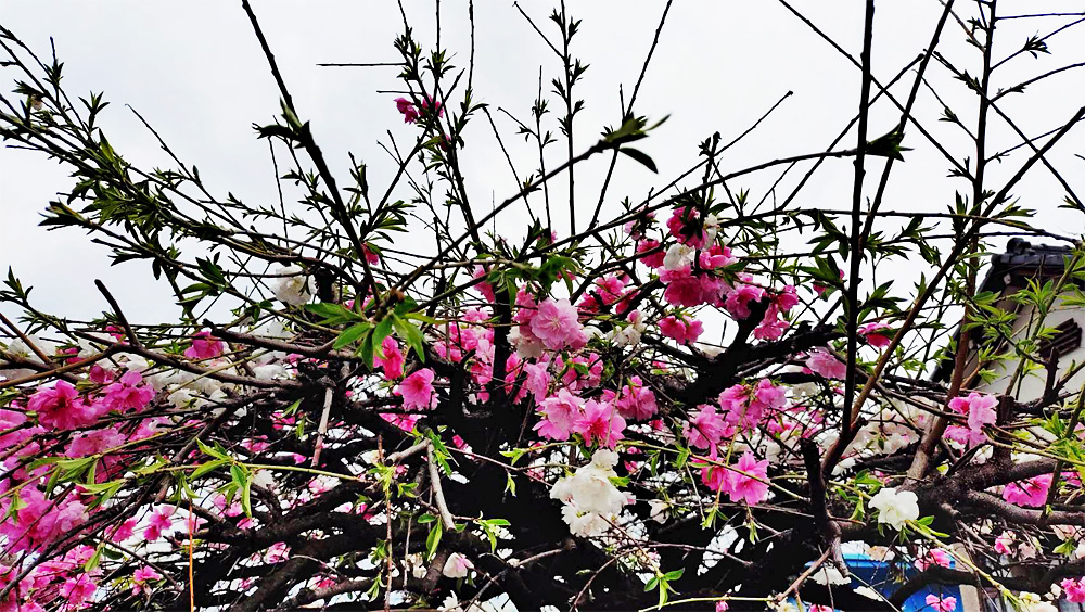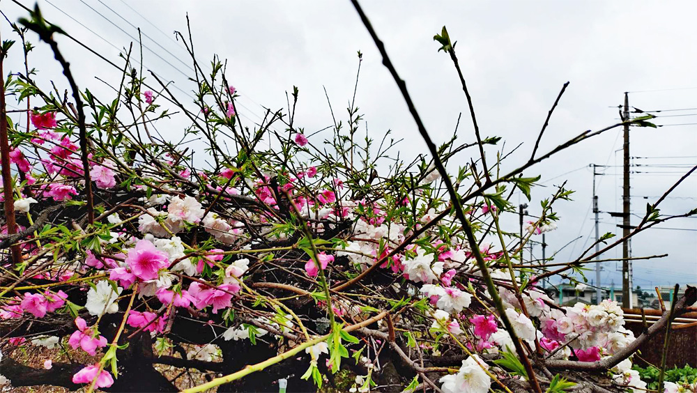 ご近所のハナモモ(花桃)見事に咲いていたので一枚。